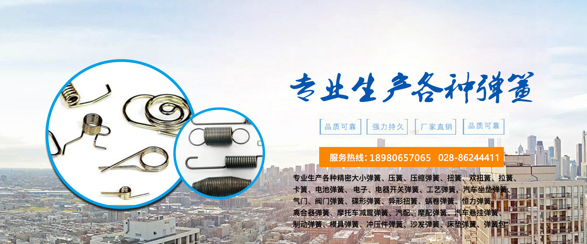 成都澳龍彈簧制造有限公司是一家專業從事各種大小彈簧加工、生產、銷售、 設計 、定做各種異形彈簧、專業生產各種精密大小彈簧、壓簧、壓縮彈簧、扭簧、雙扭簧、拉簧、卡簧、電池彈簧、 電子、電器開關彈簧、 工藝彈簧,汽車坐墊彈簧、氣門、閥門彈簧、碟形彈簧、異形扭簧、蝸卷彈簧、恒力彈簧、離合器彈簧、摩托車減震彈簧、汽配、摩配彈簧、汽車懸掛彈簧、制動彈簧、模具彈簧、沖壓件彈簧、沙發彈簧、床墊彈簧、彈簧包系列等等,并承接各種小五金、沖壓件機械及特定、不規則彈簧的加工服務。